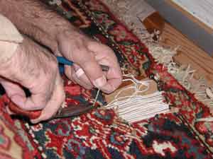 Once the damaged area is knotted the pile is sheared and the rug is ready for use.